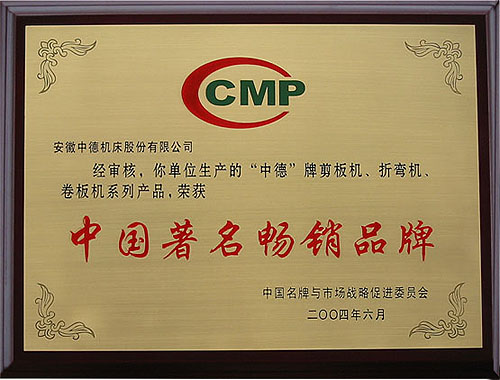 我公司生產(chǎn)的“中德”牌剪板機(jī)、折彎機(jī)、卷板機(jī)等產(chǎn)品由于質(zhì)量穩(wěn)定、市場美譽度高在本次活動中一舉當(dāng)選。(證書編號:2004MP398)