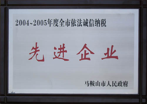 我公司受市政府表彰 被評為04-05年度“依法誠信納稅先進企業”