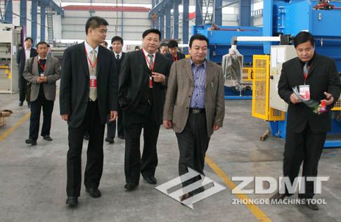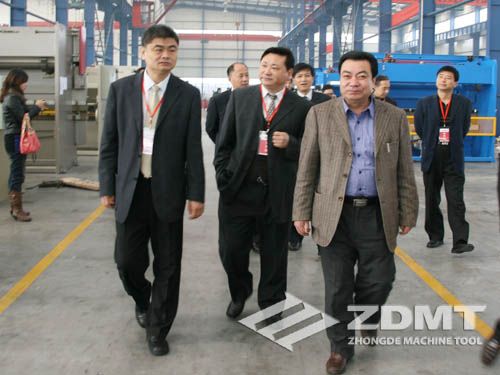 開幕式之后,展會現場當即人頭攢動,場面熱烈。中國機電產品進出口商會副會長王貴清等一行則抓緊時間來到中德機床,對展會企業進行實地考察和深入了解。 博望鎮享有“中國刃模具第一鎮”、“中國剪折機床第一鎮”的盛名,目前擁有刃模具生產企業近500家、機床制造企業近100家,年產值60多億元,是全市經濟持續快速發展的重要增長點。我公司作為本地鍛壓機床企業的代表,熱烈歡迎了王會長和馬鞍山市及其他各位領導的蒞臨。