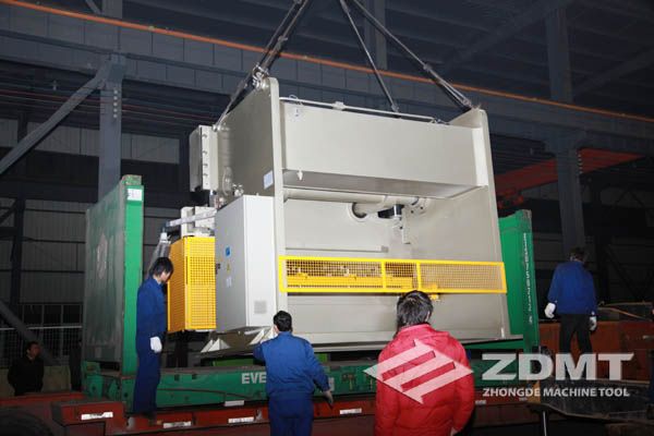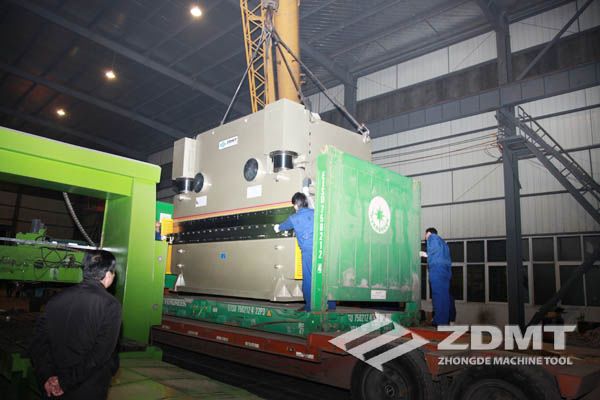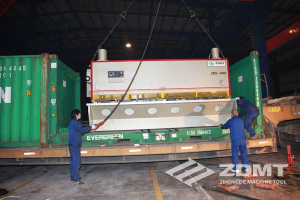 公稱壓力500噸的數控折彎機和剪切能力16毫米的數控閘式剪板機分別超過30噸和20噸,外形尺寸完全超過了普通集裝箱的尺寸。像這種類型的機器在國內發貨很平常,但是對于出口來說情況卻完全不同。由于框架箱運輸的特殊性以及海運運輸的風險性,對機器的包裝和捆扎是對工廠的新考驗。